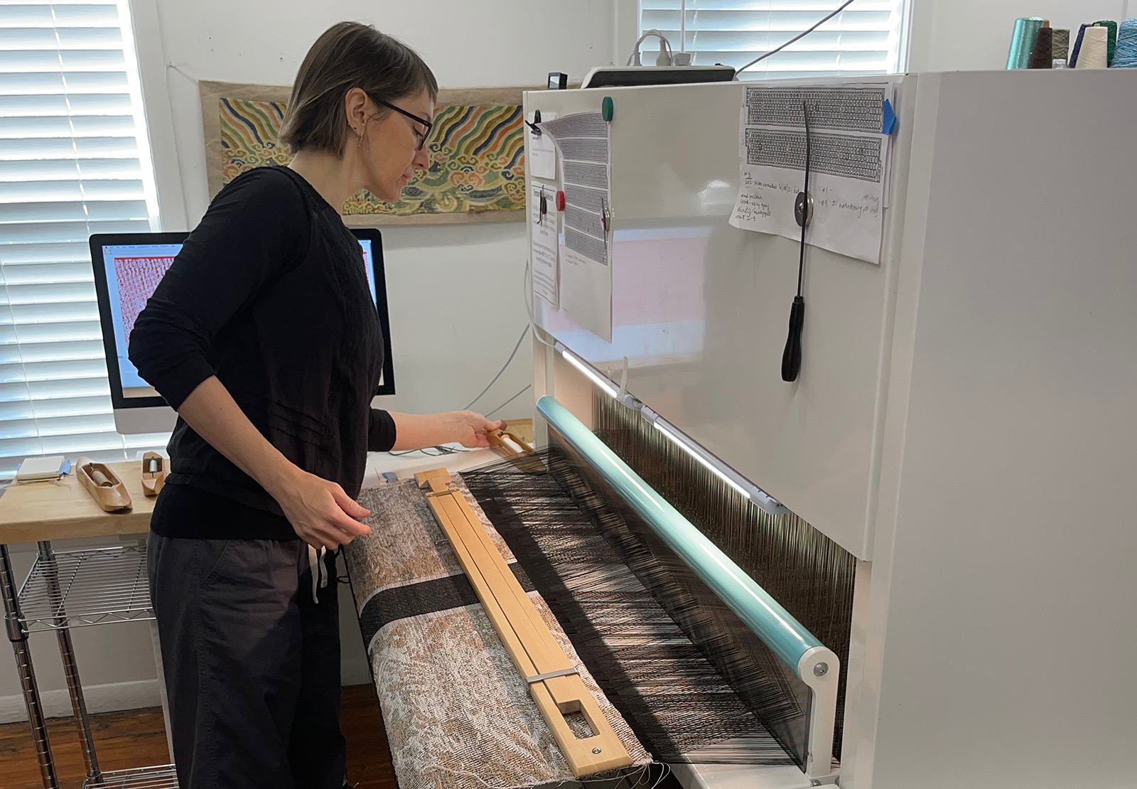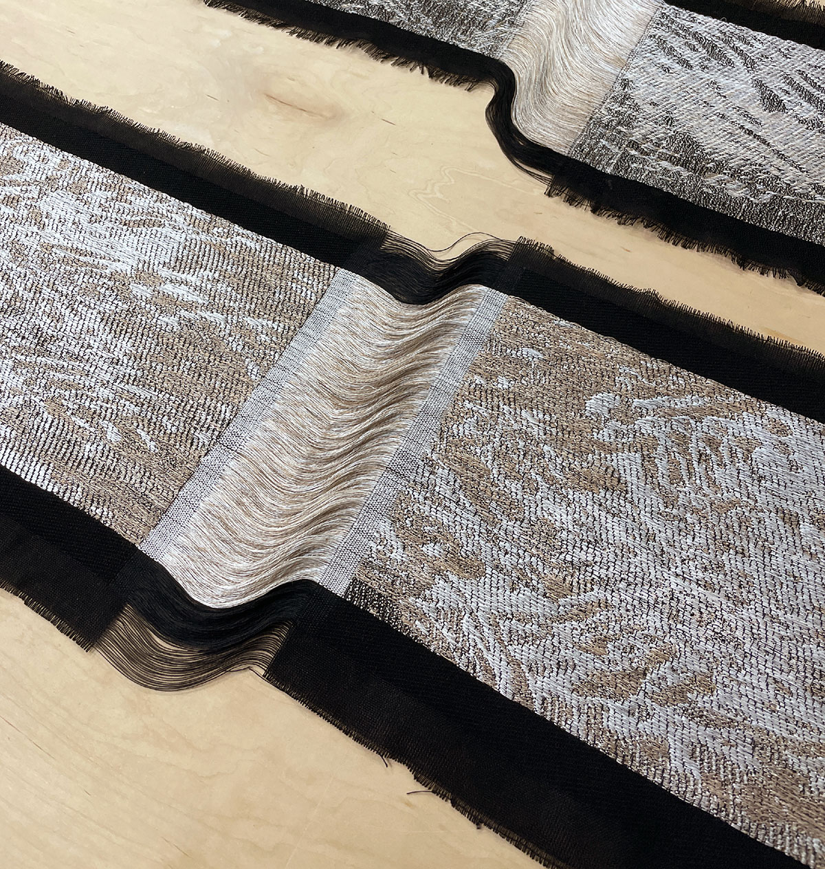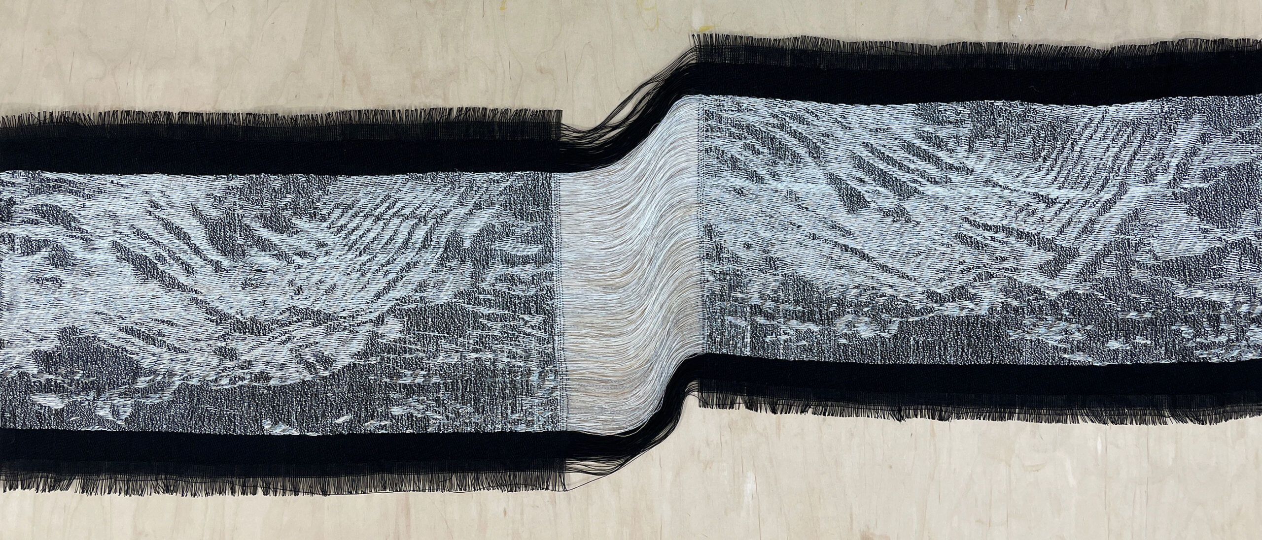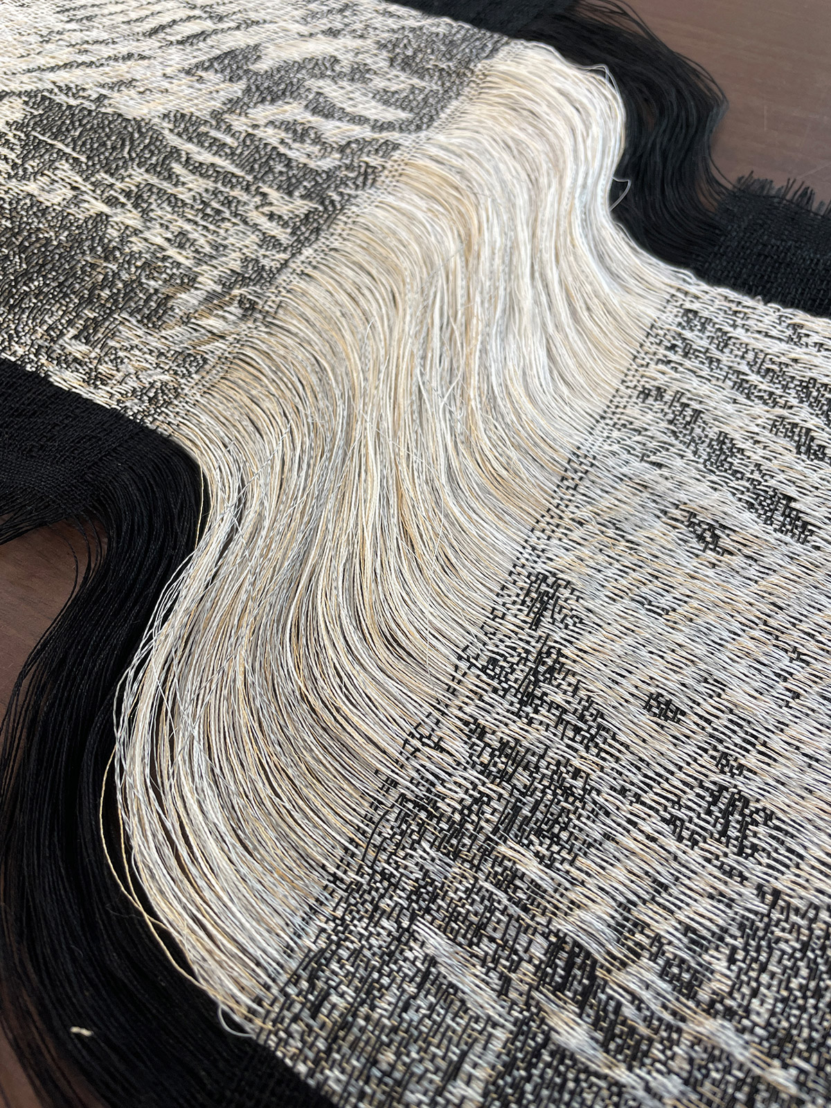 A two-week deep dive on Praxis Fiber Arts' digital jacquard weaving loom. Testing ideas on invisible structures with woven structures — 'bitmap' LED shadows, water flow interlacements, suspended time, & fluid time.